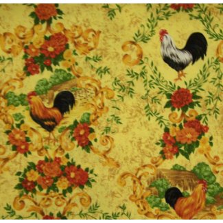This colorful rooster fabric has no name, but it was designed by Joy Hall. This is a coordinating fabric to the fabric listed called Rise and Shine.