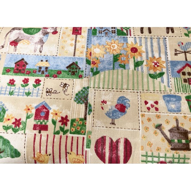 This cute country home decor fabric is out of print. Fabric measures 1 yard in length by 44/45 inches wide.