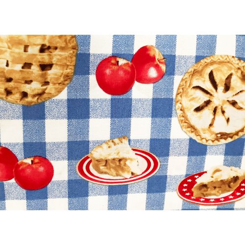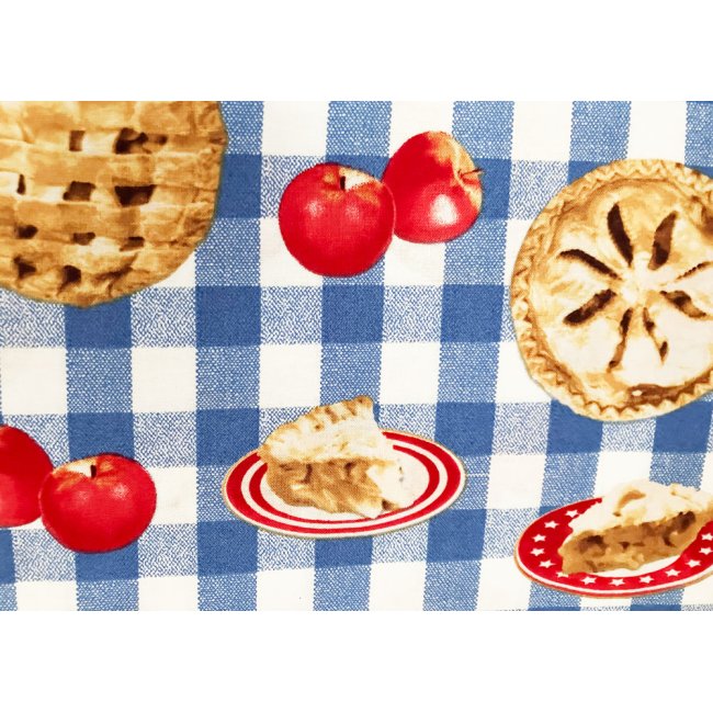 This apple pie looks good enough to eat. This fabric is for custom aprons only.