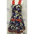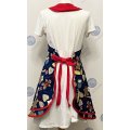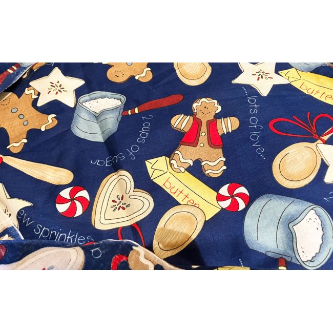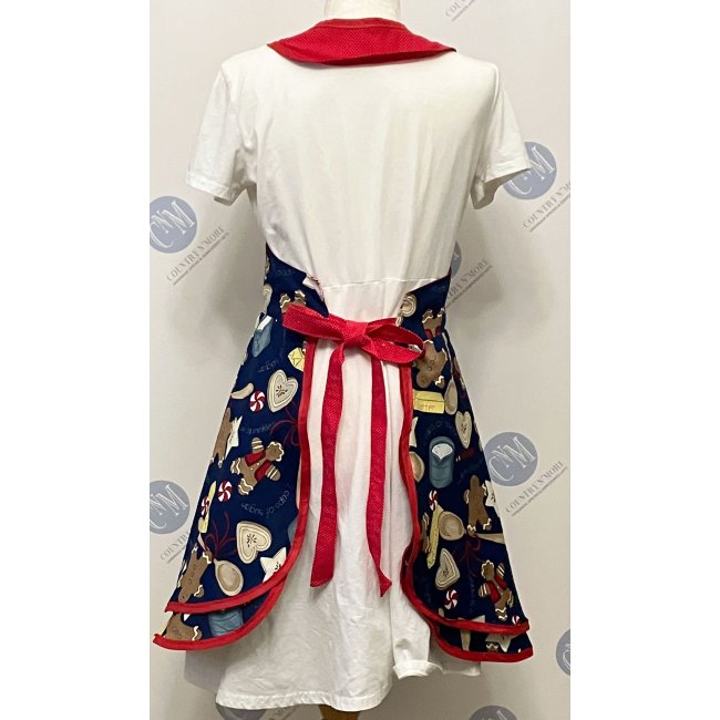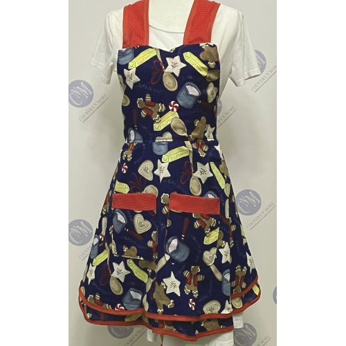 It is hard to depict the gorgeous blue background on this holiday baking theme pin up apron. The blue is brighter than depicted (more towards royal blue. This apron is perfect for protecting your clothing while baking or cooking.
