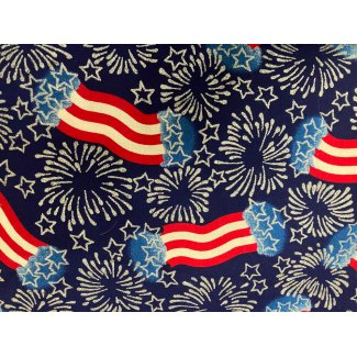Patriotic Flags and Fireworks Fabric. Fabric measures 1 yard in length by 44/45 inches wide.