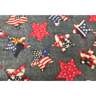 Patriotic stars on a navy blue background. This is a lighter weight fabric.