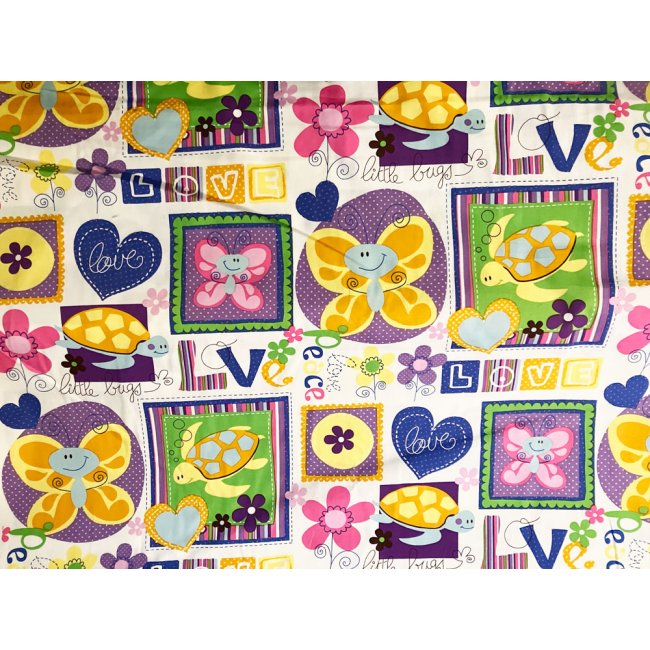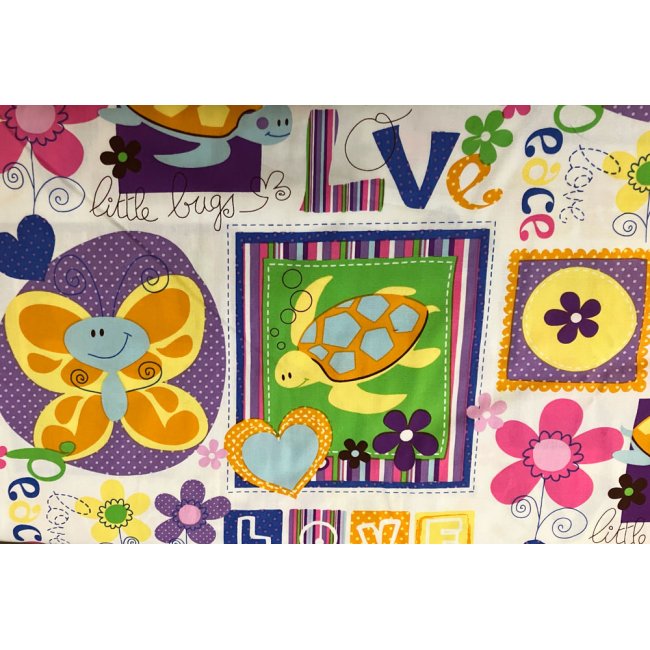 This colorful retro print is so cute. Retro Love Critters by Trendtex. This fabric is dated 2012. Fabric measures 1 yard in length by 44/45 inches wide.