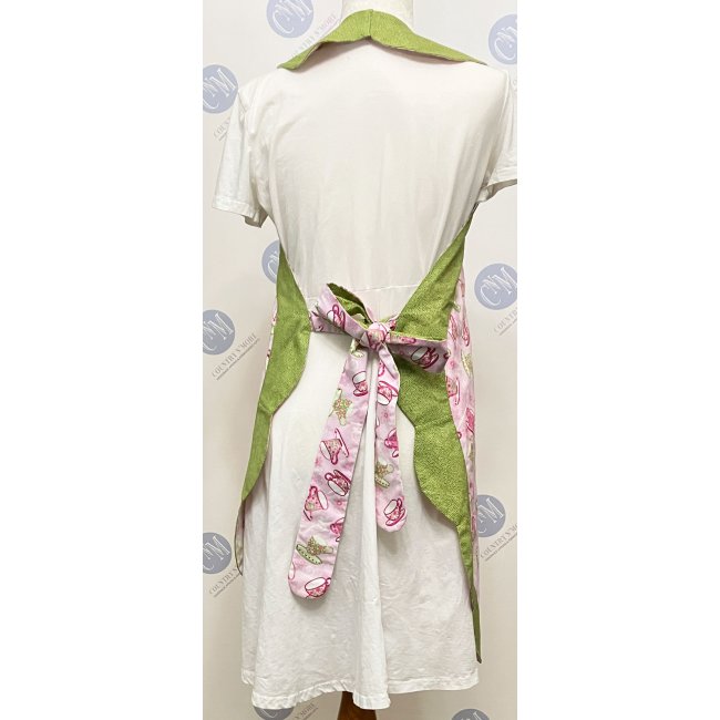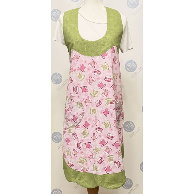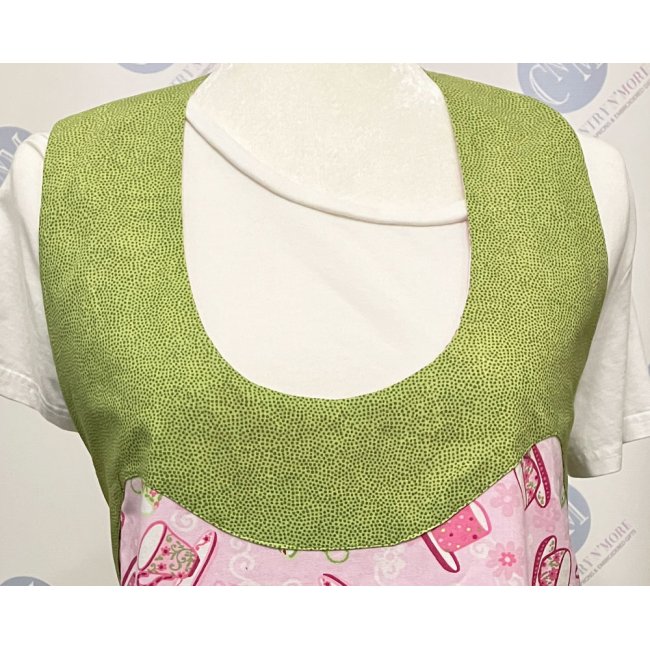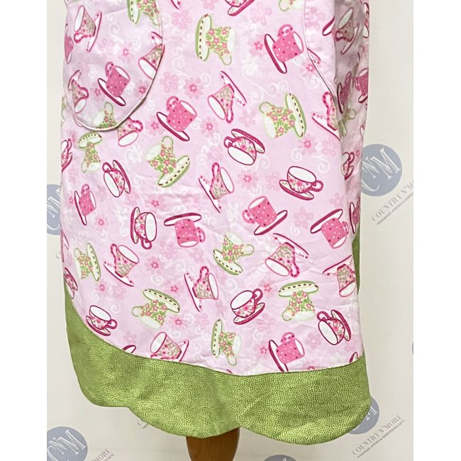 Vintage Look Tea Theme Apron. This one-of-a-kind apron, was made using a tea theme fabric. This style is not only cute, but pretty.